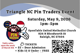 Secure your spot for two great pin trading events: one in Raleigh on Saturday, March 7th and an even bigger one in Durham on Saturday, March 28th.
